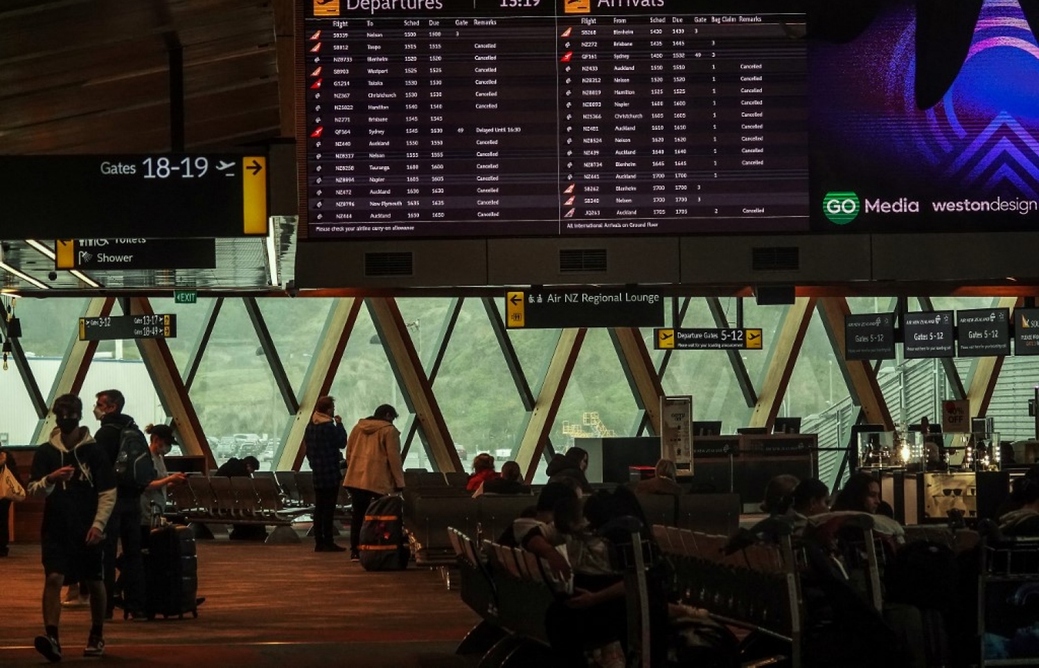 Winds of 80 kilometres (50 miles) per hour forced all flights in and out of Wellington Airport to be cancelled, as conditions made it unsafe for baggage handlers to operate.