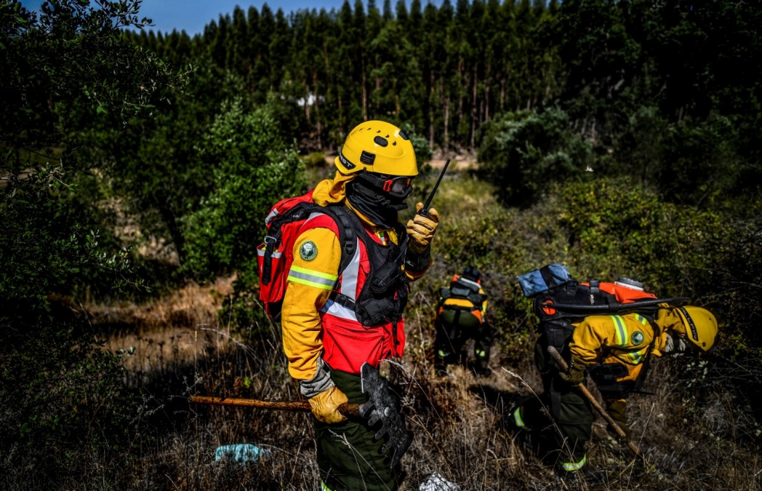 (FILES) In this file photo taken on August 30, 2019 Private firefighters from Afocelca, clear bushes close to an eucalyptus forest, during a drill at Constancia in Abrantes, central Portugal. - Faced with devastating fires that are likely to increase with global warming, Spain and Portugal are faced with the imperative to better manage their forests so that tens of thousands of hectares do not go up in smoke each summer. -- Photo: Patricia De Moreira / AFP