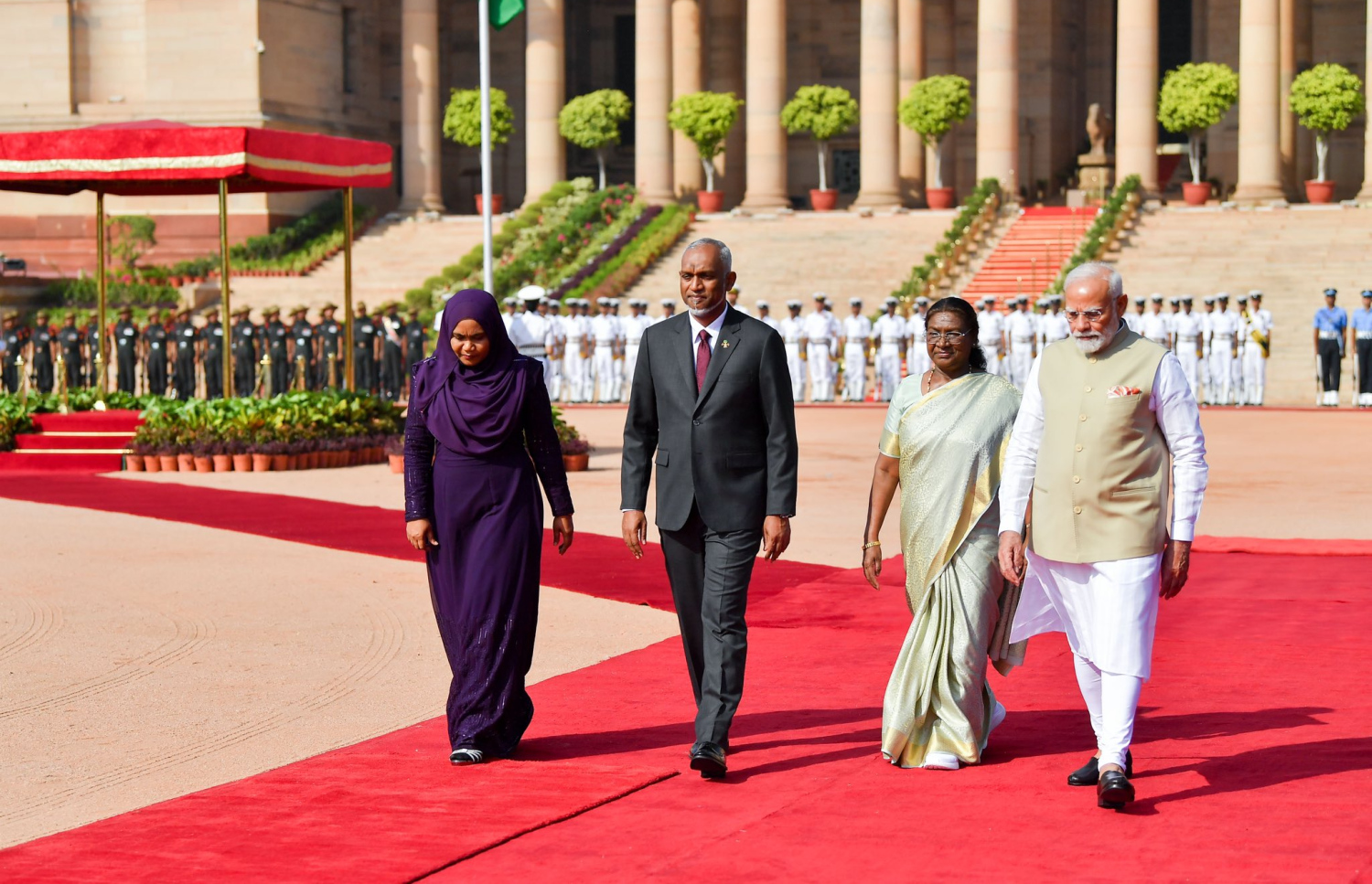 The Government of India has this morning held an official welcoming ceremony for President Dr Mohamed Muizzu and First Lady Sajidha Mohamed who are on an official State Visit to India.